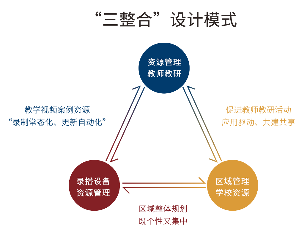 考慮全面的三整合設計:平臺設計,考慮到“錄播設備與教學視頻案例資源管理整合”、“教學視頻案例資源管理與教師專業發展整合”、“區域視頻案例資源與學校視頻案例資源整合”。全面提高教學視頻的利用率。