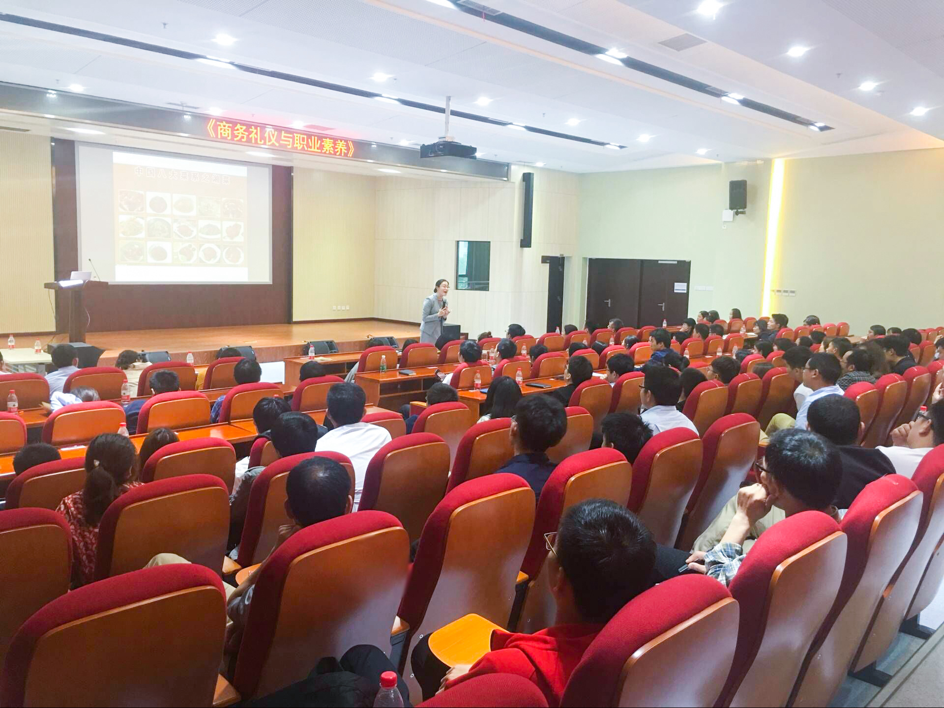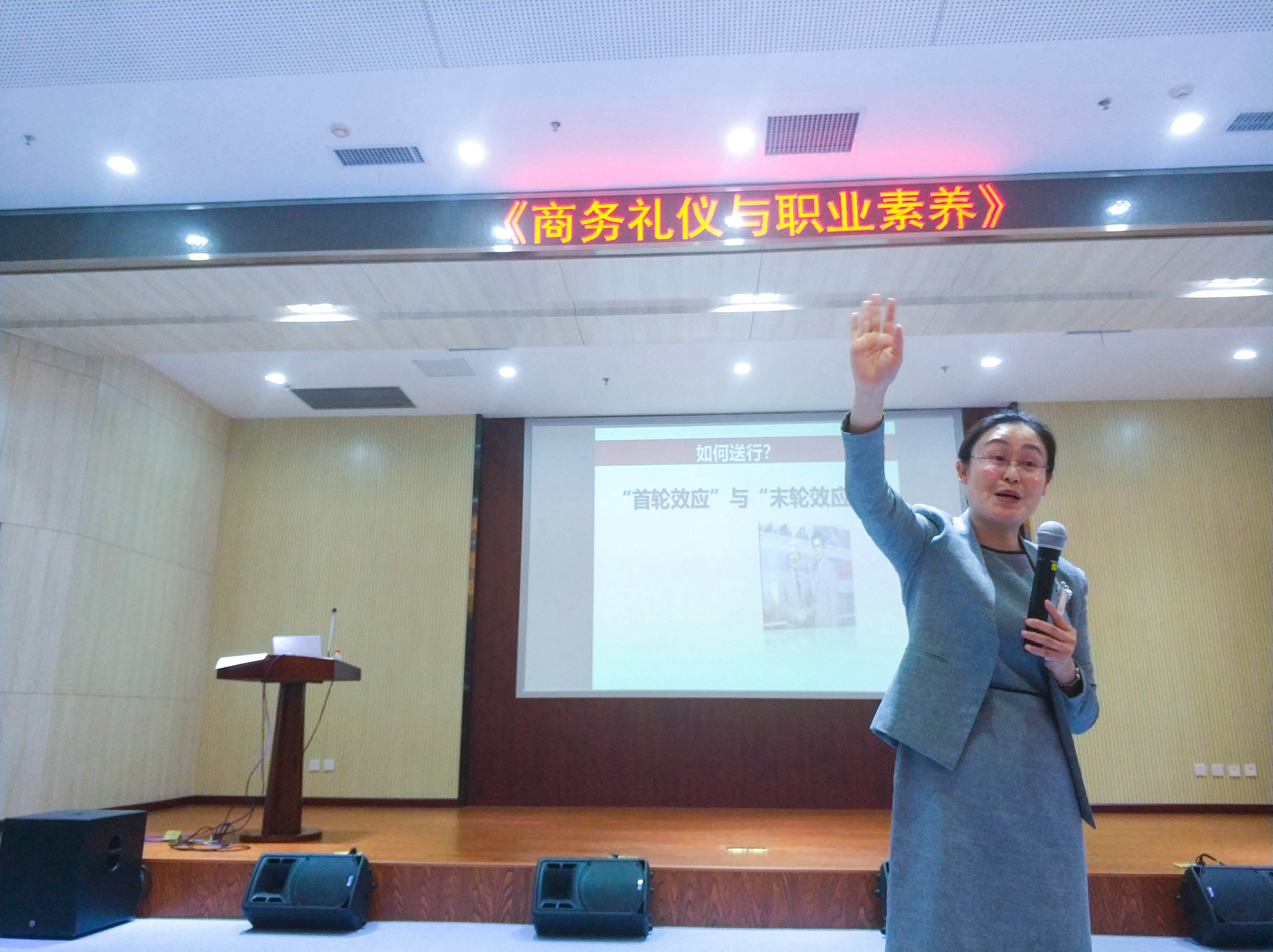 田老師首先為大家講解了商務職場人士的儀容、儀表、儀態。關于個人形象,田老師詳細闡述了作為商務職場人士的發型要求和面部修飾;關于商務著裝,田老師分別從服裝的顏色、款式、搭配各方面講解了一個工作者的得體著裝。