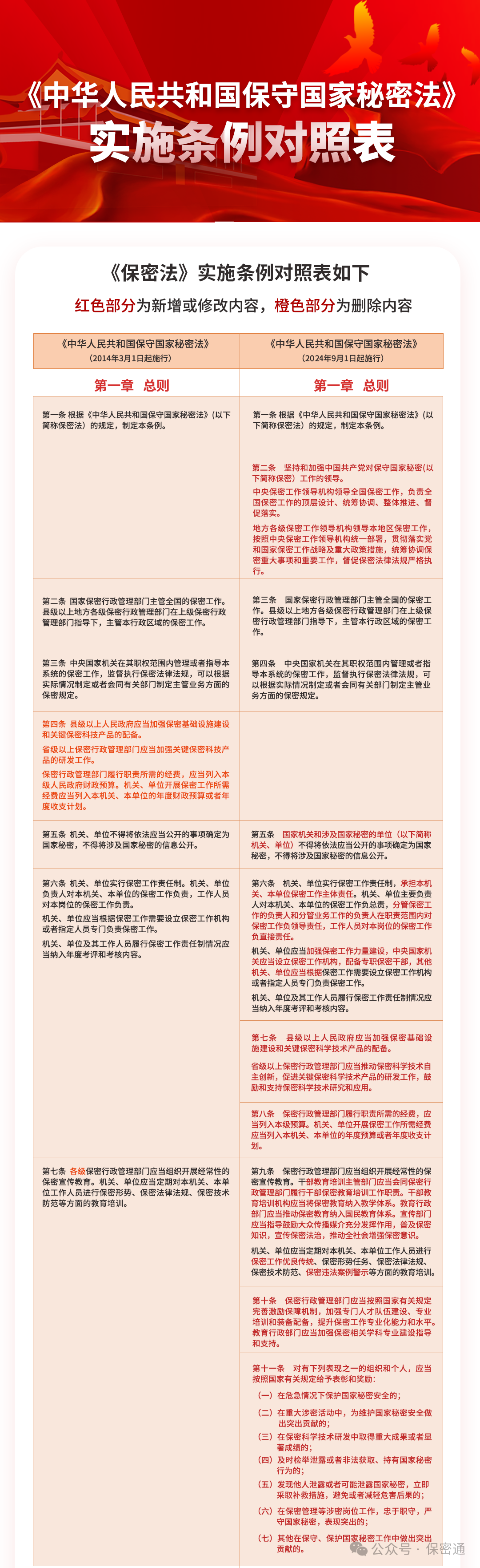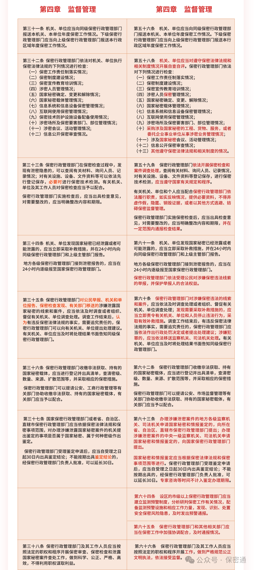 《中華人民共和國保守國家秘密法》實施條例新舊對照表