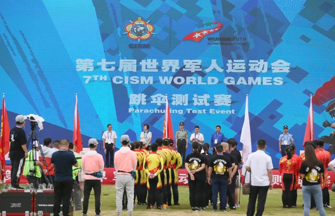 2019年6月12日上午,第七屆世界軍人運動會跳傘項目測試賽在漢南通用航空機場正式開賽。本次比賽共有來自北京市、四川省航空運動學校,河南省、湖北省、湖南省航空運動管理中心等10支代表隊參賽。