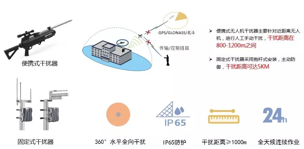 五、周界無人機干擾系統:通過切斷無人機與遙控器之間通信鏈路以及無人機的GPS信號,達到驅離、迫降的效果,筑造“空中屏障”,有效保障目標區域的低空空域安全。